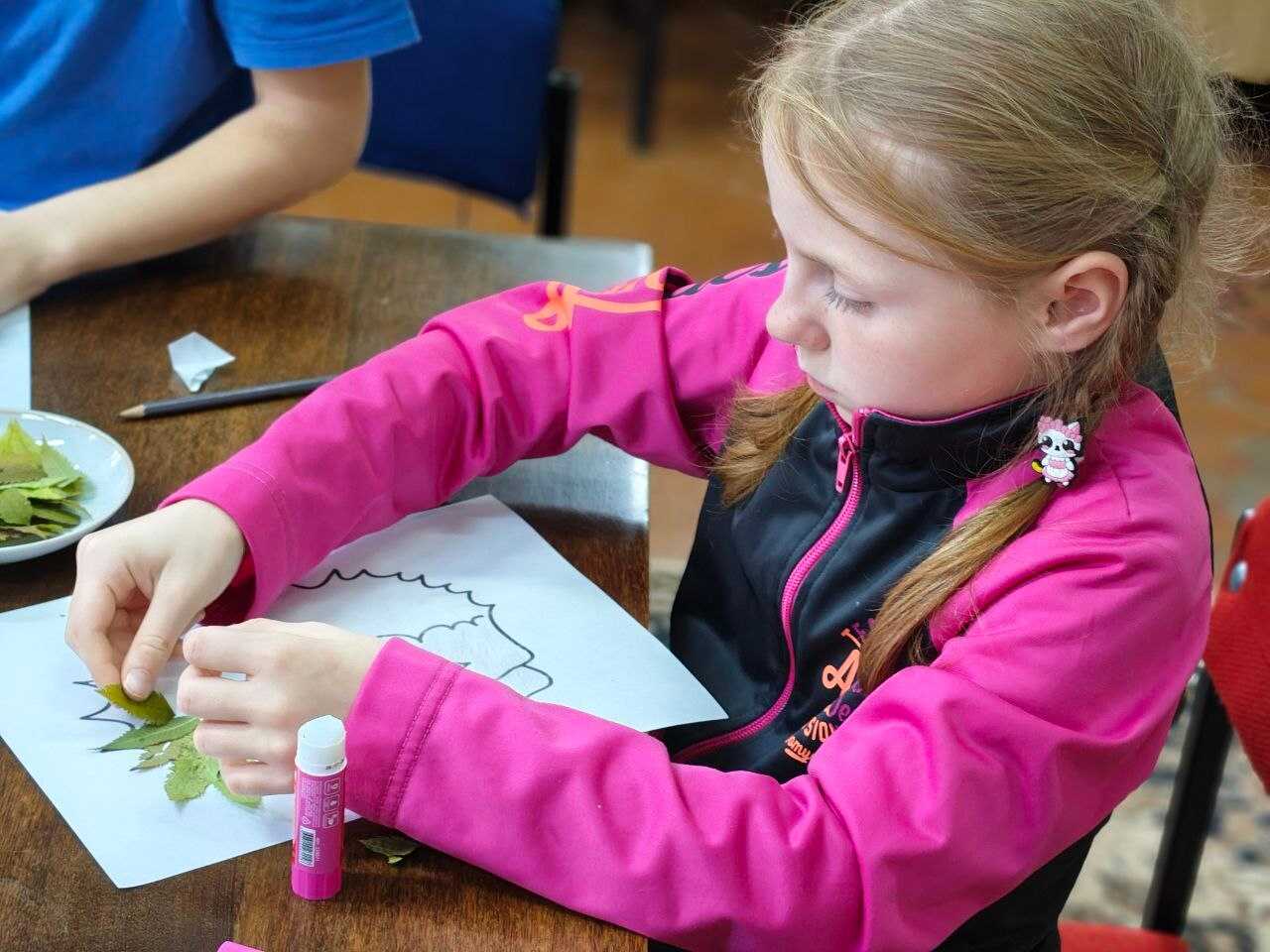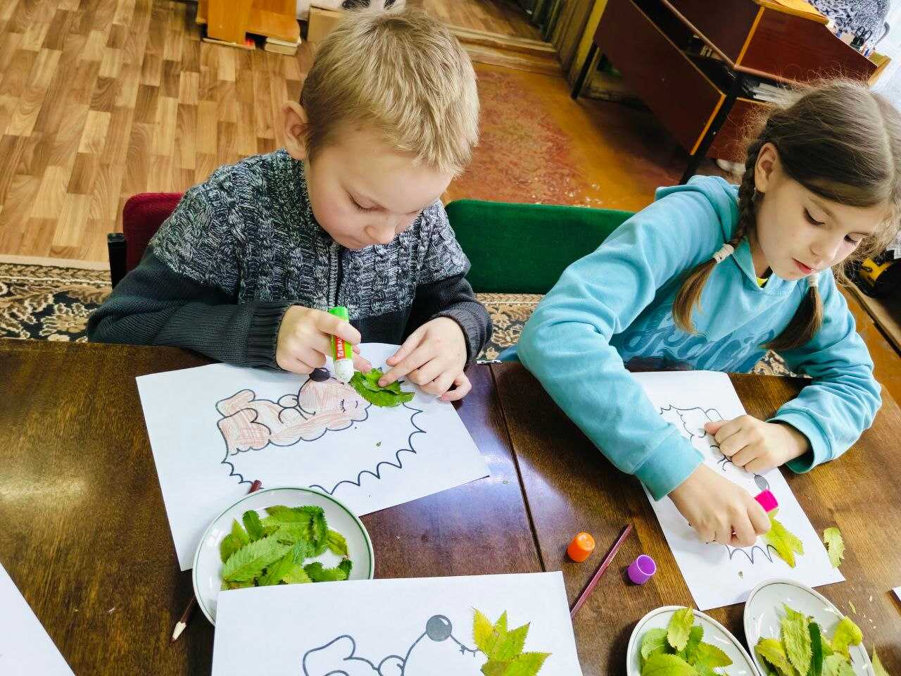 А после интеллектуальной разминки Наталья Васильевна предложила всем немного творчества. Вместе мы принялись за создание поделок из осенних листьев. Получилось очень красиво.