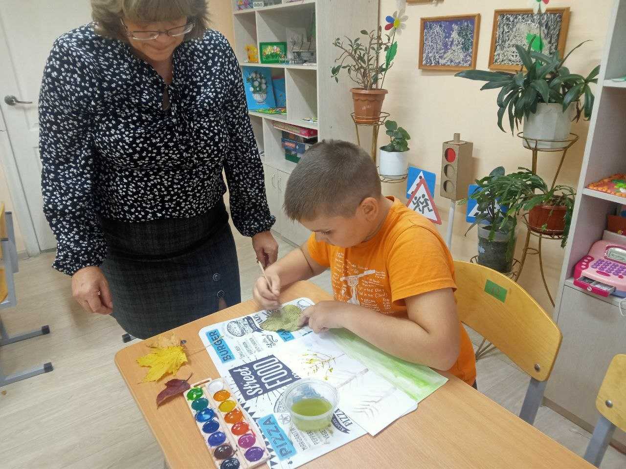Сегодня ребята создали рисунки используя технику оттиска листом. Рисование отпечатками листьев – удивительная творческая техника. Простая и доступная всем, она дает эффектные результаты.