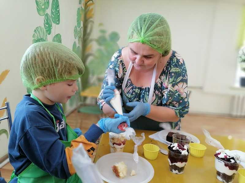 Сегодня, к нам в гости приехала волонтер из Нижнего Новгорода Анастасия. Её основная профессия - повар-кондитер. Настя с удовольствием поделилась своим мастерством, подготовила и провела мастер-класс «Десерт в стаканчике». Ребята узнали рецепт и сами приготовили два вида самых вкусных десертов «Вишня в шоколаде» и «Клубника – ваниль».