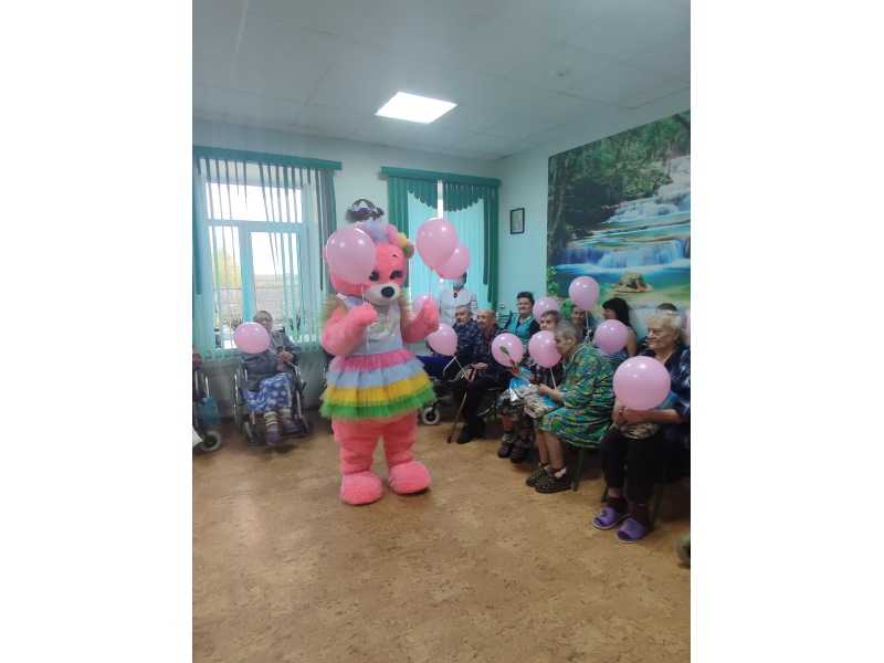 06 октября 2022 года в Богородском доме-интернат прошли поздравительные мероприятия от Нижегородской региональной общественной организации социальной поддержки и защиты пожилых людей и инвалидов "Территория добра".Для получателей социальных услуг было организовано представление с ростовой куклой "Мишка-Зефирка". Сладкие подарки и открытки, сделанные руками детей, вручили нашим получателям социальных услуг, коллектив мам футбольной лиги Нижнего Новгорода.