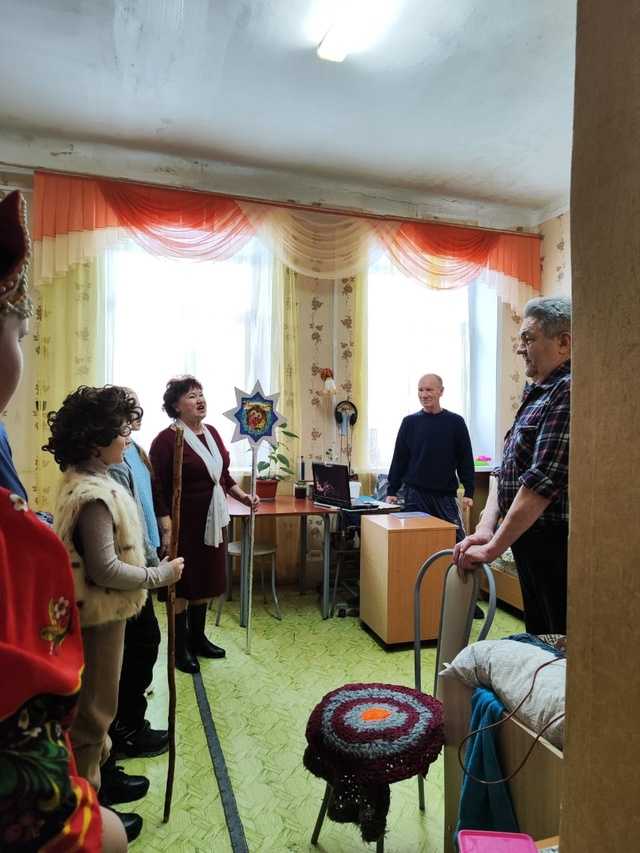 "С Рождества и до Крещения славим мы Христа рождение." Учащиеся воскресной школы и коллектив "Калинка "поздравили с праздниками жителей нашего домика!