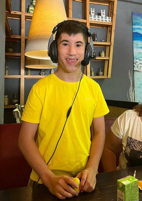 Когда он немного освоился в магазине мы спросили - Что бы ты сейчас себе купил? - сказал, что нужен жилет для плавания, чтобы купаться на пруду, свой телефон и наушники. Жилета подходящего по размеру не нашли, а вот наушники получилось купить - в подарок от волонтера.