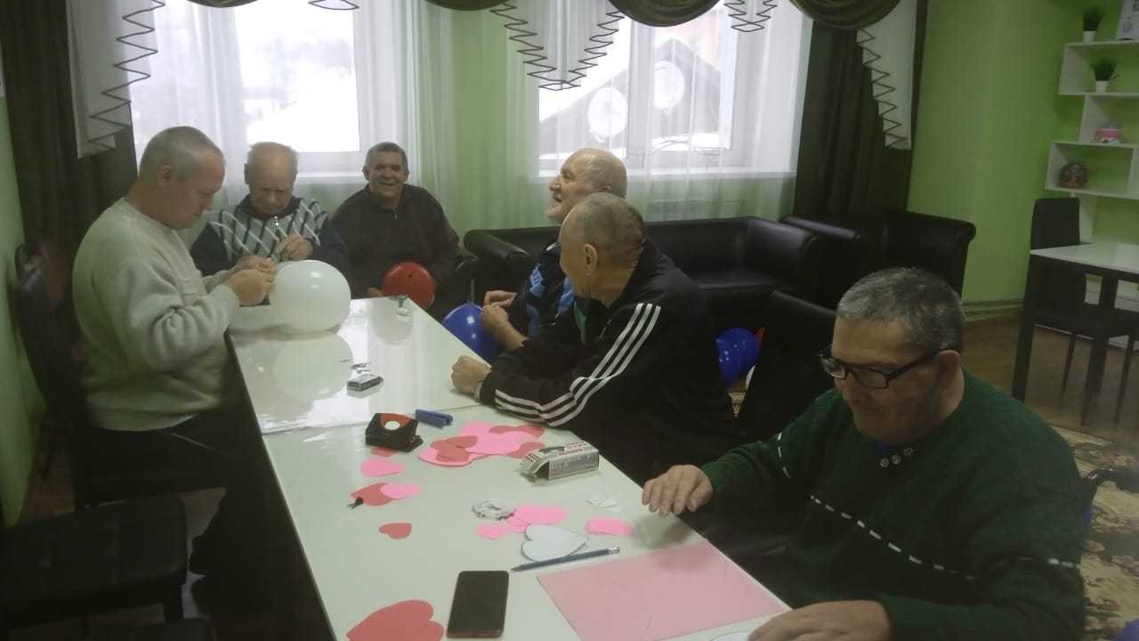 День матери самый нежный и трогательный праздник. Сегодня наши проживающие мужчины активно начали готовиться к празднику. Украшали зал, вешали шары, вырезали сердца. В активной беседе вспоминали своих мамочек. Получилось очень нежно и красиво.