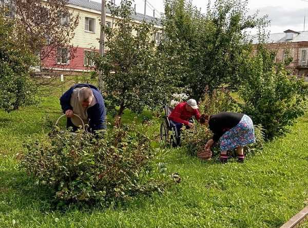 Опять вернулись жаркие деньки, и получатели социальных услуг вышли на последний в этом году сбор листьев плодовых деревьев для заготовки чая.