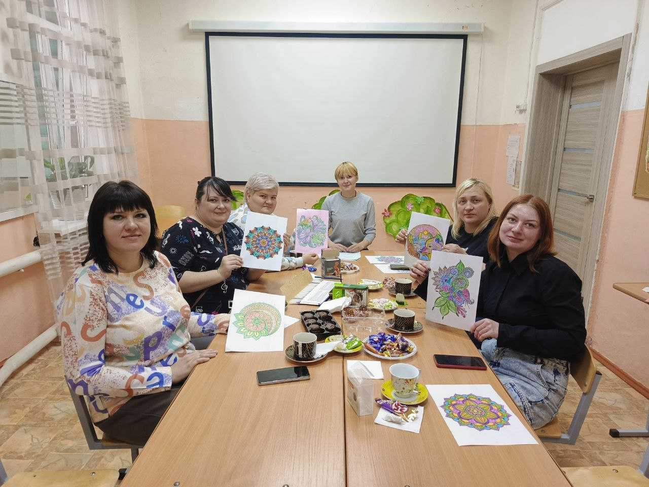 В теплой дружеской обстановке для мам был проведен психологический тренинг «Раскрась свой внутренний мир»