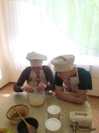 Интересный проект летом запущен педагогами учреждения в коррекционно- развивающей работе с детьми- «Кулинарная мастерская». Самостоятельный или с помощью взрослого процесс приготовления блюд творческий и увлекательный. Особо это значимо для детей- инвалидов, проживающих в стационарных условиях, которые, в силу здоровья, многое получают в готовом виде. Научить ребенка простым, но самостоятельным действиям, показать, как готовятся печенье или салат, сенсорно ощутить различные продукты, закрепить навыки столового этикета и угостить чаем друзей - важное достижение в социально- бытовом развитии. Ко дню социального работника ребята испекли пирог «Шарлотка» и угостили им своих педагогов.