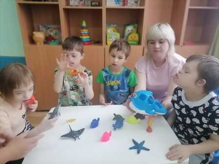 Накануне праздника с ребятами были проведены экологические часы, где они узнали о многообразии подводного мира и о том, что многие из них находятся под угрозой исчезновения и занесены в Красную книгу. Дети с интересом слушали истории об обитателях водной стихии, отгадывали загадки, складывали пазлы и играли в «дельфиньи игры».