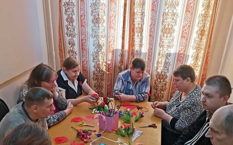 Арт-терапия — универсальный вид творчества, при помощи которого можно побороть стресс, внутренние страхи и фобии, а также развить креативность мышления и раскрыть собственный потенциал. Создание декоративных искусственных цветов является увлекательным занятием. 01.03.2023 прошел мастер-класс «Композиция из бумажных цветов». Люди, которые делают что-то своими руками, тратят часы в кропотливом труде, вкладывают душу, мастерство, и поэтому такие подарки особенно приятны и поднимают настроение. Они несут тепло души мастеров.