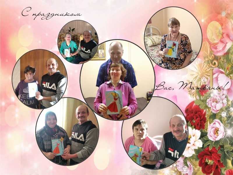 В государственном бюджетном учреждении «Кузьмиярский психоневрологический интернат» сегодня чествовали Татьян, проживающих в учреждении, их у нас шесть. Всем дамам заранее наши мастерицы подготовили чудесные открытки с поздравлениями, а Фёдор Пестреев и Евгений Вятин лично вручили их каждой Татьяне.