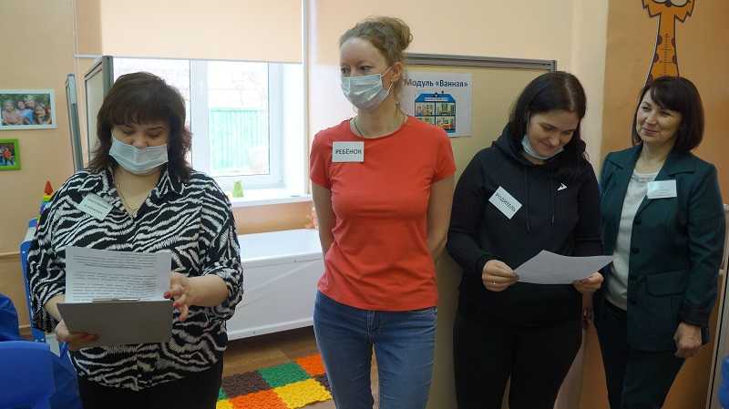В ходе семинара-практикума на имитационной площадке ГБУ «РЦДПОВ г. Арзамаса» «Безопасный дом», стилизованной под квартиру с модулями "Детская спальная комната", "Игровое развивающее пространство", "Кухня", "Ванная", участникам была представлена практическая модель изменения жизненного пространства ребенка, организации развивающего ухода за ним с использованием принципов бережливого производства.