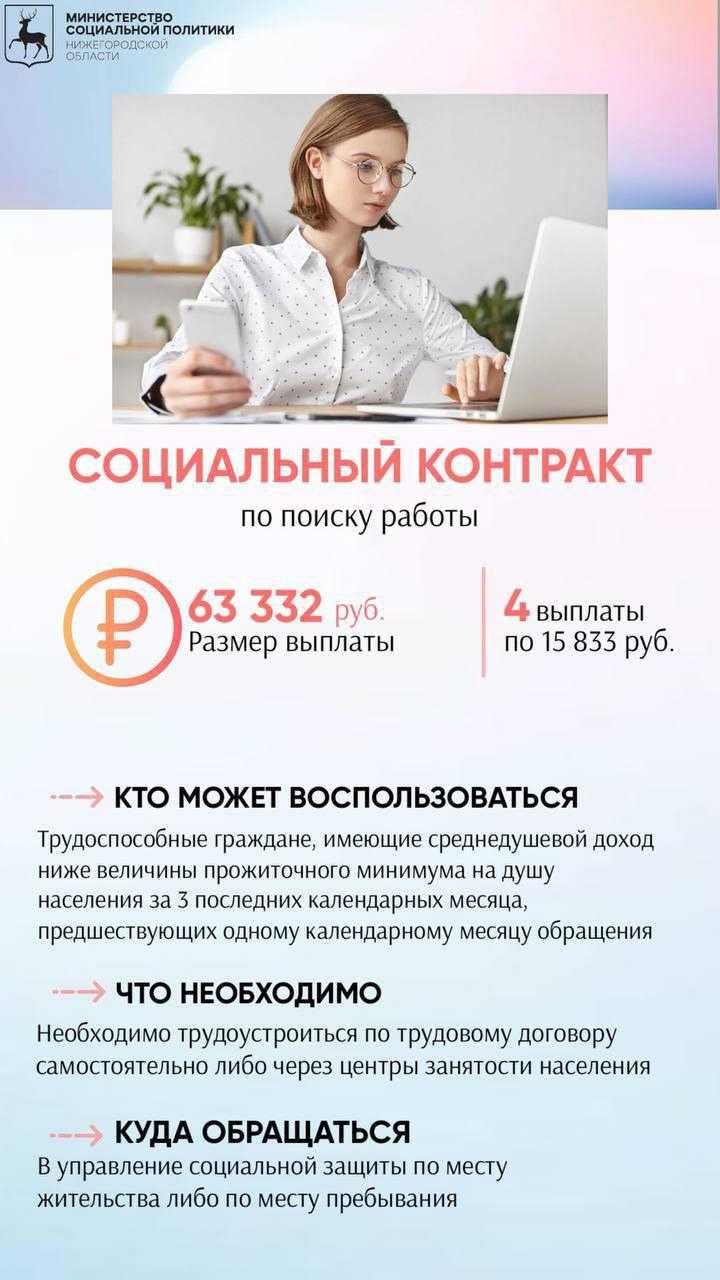 Напоминаем, что в Нижегородской области действуют меры социальной поддержки на основе социального контракта: