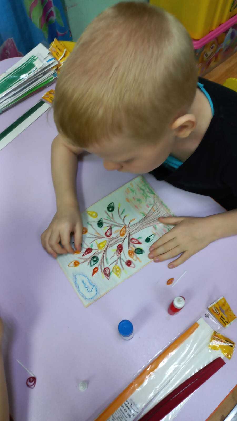 Воспитатель дошкольной группы Надежда Михайловна Шестакова провела занятие по квиллингу, которое было посвящено созданию прекрасных осенних деревьев из бумаги.
