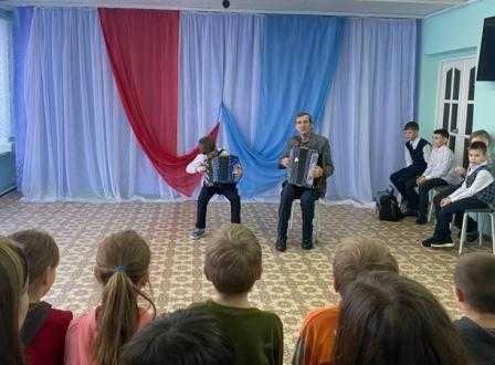 Под руководством своего наставника, юные артисты исполняли на баянах музыкальные произведения.