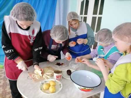 Сегодня наши девочки, вооружившись разделочными досками и ножами, надев фартуки и головные уборы, приступили к приготовлению винегрета.