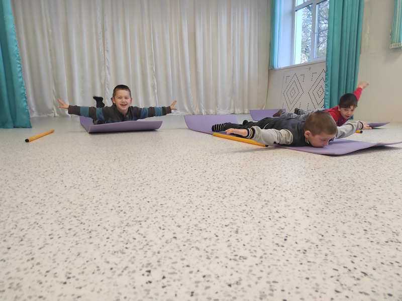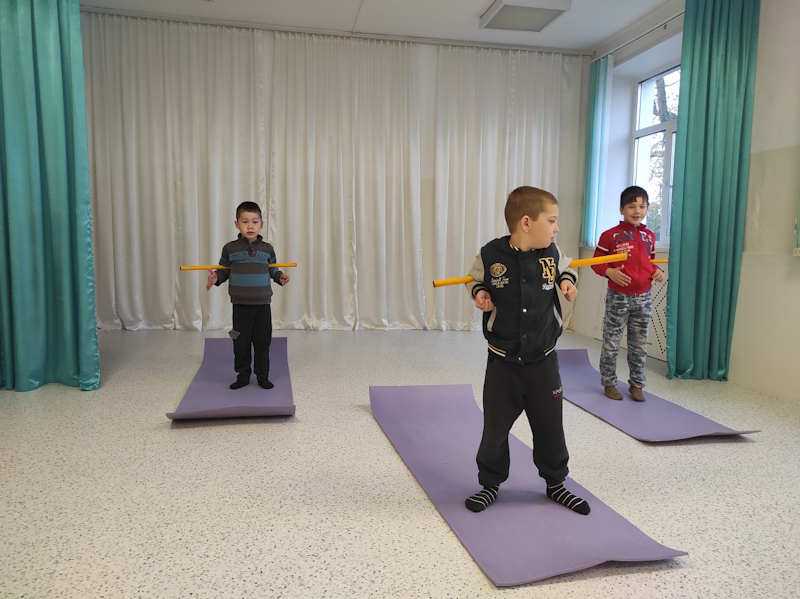 Воспитанники Центра с помощью упражнений учились правильно держать осанку.