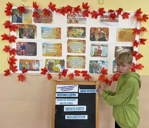 На фоне медленной композиции «Осень» Энрике Морриконе педагогом – психологом было прочитано трогательное стихотворение Л.Аверьяновой «Старость надо уважать». Дети глубоко прочувствовали услышанное, и в их высказываниях прозвучала мысль о том, что каждый человек, молодой или старый нуждается в помощи, сочувствии, внимании, заботе.