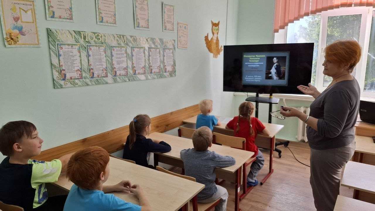 Мы начали с просмотра презентации, где ребята познакомились с ключевыми событиями той эпохи и героями Бородинского сражения.