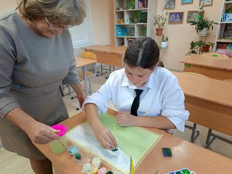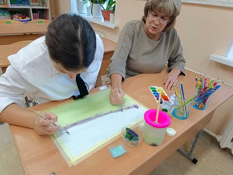 Оля, под чутким руководством воспитателя изобразила осенний пейзаж. Она творила, фантазировала, изображала осеннюю природу, яркие краски осеннего леса легли на лист альбома.