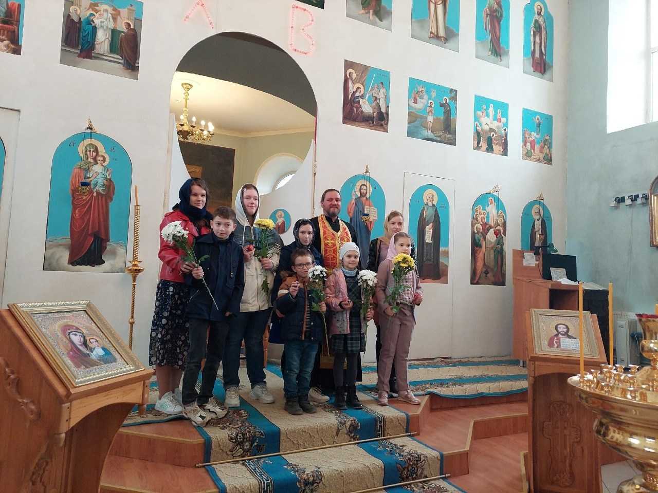 Отец Евгений рассказал о празднике светлой Пасхи, провел экскурсию по храму и подарил ребятам памятные подарки.