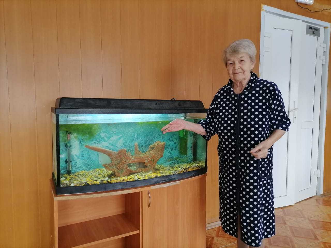 В современном мире множество людей, особенно люди старшего поколения находятся в состоянии стресса. Это может стать причиной возникновения многих проблем со здоровьем например, сердечного приступа, высокого давления, депрессий и т.д. Для того, чтобы побороть стресс, существуют различные техники релаксации. Прекрасным решением этой задачи станет аквариум. Получасовое наблюдение за жизнью рыбок помогает людям расслабиться, забыть о проблемах и обрести гармонию. «Аквариум- это не только элемент декора, это частичка загадочного подводного мира в миниатюре» - рассказывает Маргарита Егоровна, которая знает о аквариуме и его обитателей все. Созерцая аквариум, можно не только улучшить настроение и расслабиться, но и понизить давление и нормализовать сердечный ритм. Помимо этого, замечено: терапевтическое воздействие возрастает с увеличением количества рыб в воде. Наблюдение за обитателями аквариума, успокаивающе влияет на психику, а также обладает рядом ранее неизвестных преимуществ для здоровья человека. В ГБУ «Сосновский дом-интернат» многие получатели социальных услуг активно применяют метод аквариумотерапии и улучшают свое настроение и здоровье.