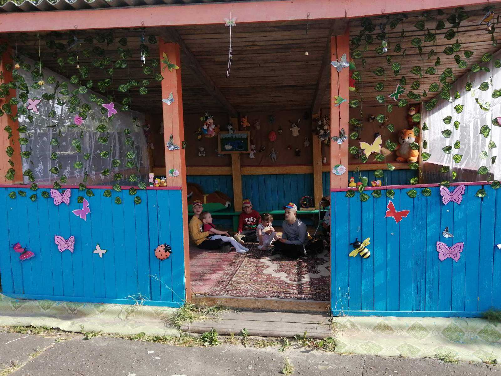 Лето, лето к нам пришло! Стало сухо и тепло По дорожке прямиком Ходят ножки босиком. (В. Берестов) Настала пора, когда дети максимум времени проводят в активных играх на свежем воздухе, развлекаясь и развиваясь одновременно. В этот период особенно необходимой становится веранда. Вот и мы воспитатели, няни и, конечно же, дети групп №4 и №6 решили оформить нашу веранду. Каждый внес вклад по мере своих возможностей в ее преображение. В проведении подобных мероприятий очевиден важный воспитательный момент: совместный труд не только объединяет, учит общаться, помогать друг другу, приносит удовлетворение и радость, но и помогает формировать личность. Теперь у нас появилось еще одно место для прогулок и отдыха детей, в котором они чувствуют себя уютно.
