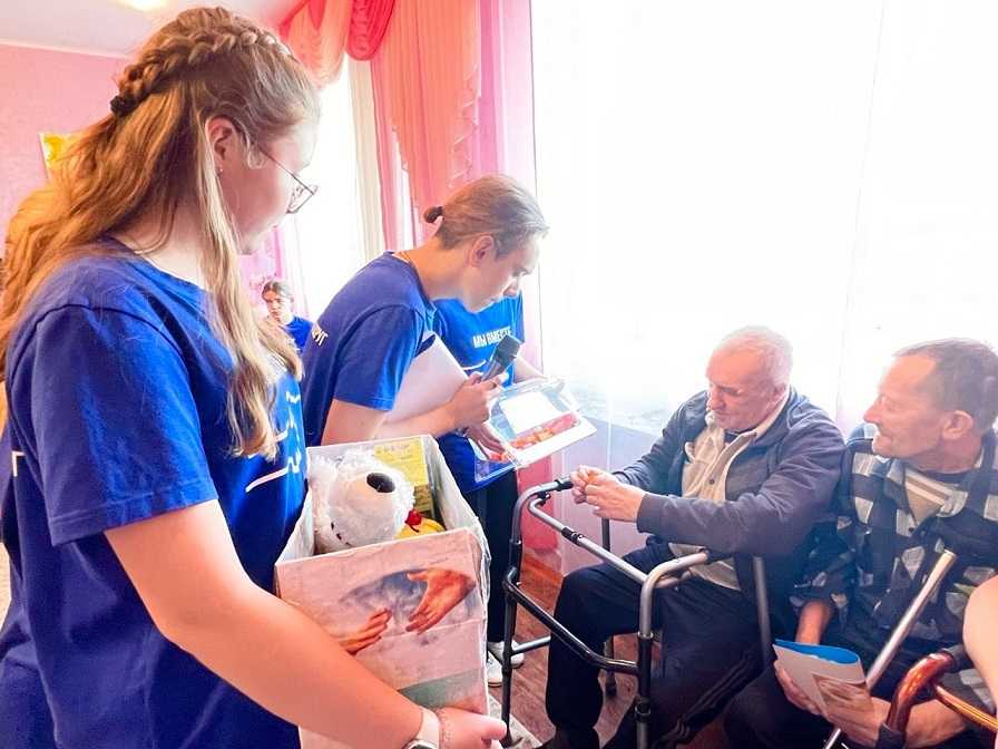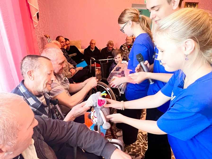 Волонтеры с большим старанием подготовили для бабушек и дедушек праздничный концерт.