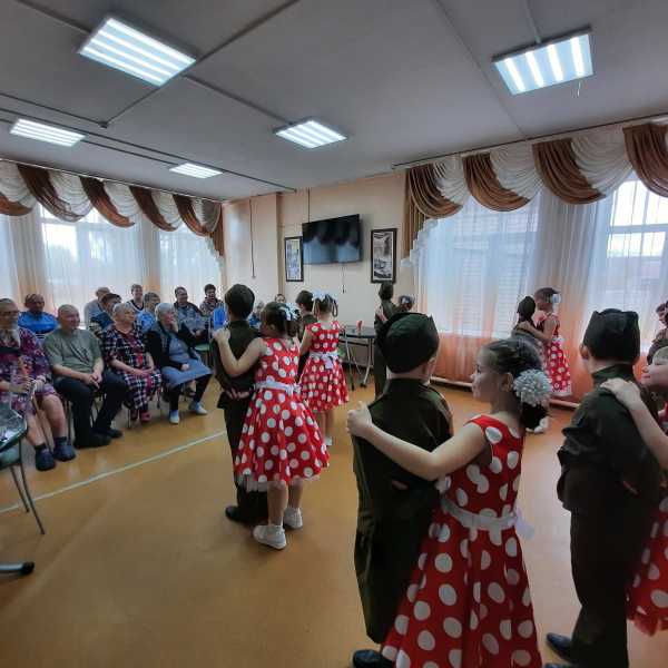 Накануне праздника Дня Победы ученики Первомайской школы - учитель Жанна Николаевна Синягина - вновь посетили с концертом наш дом-интернат.