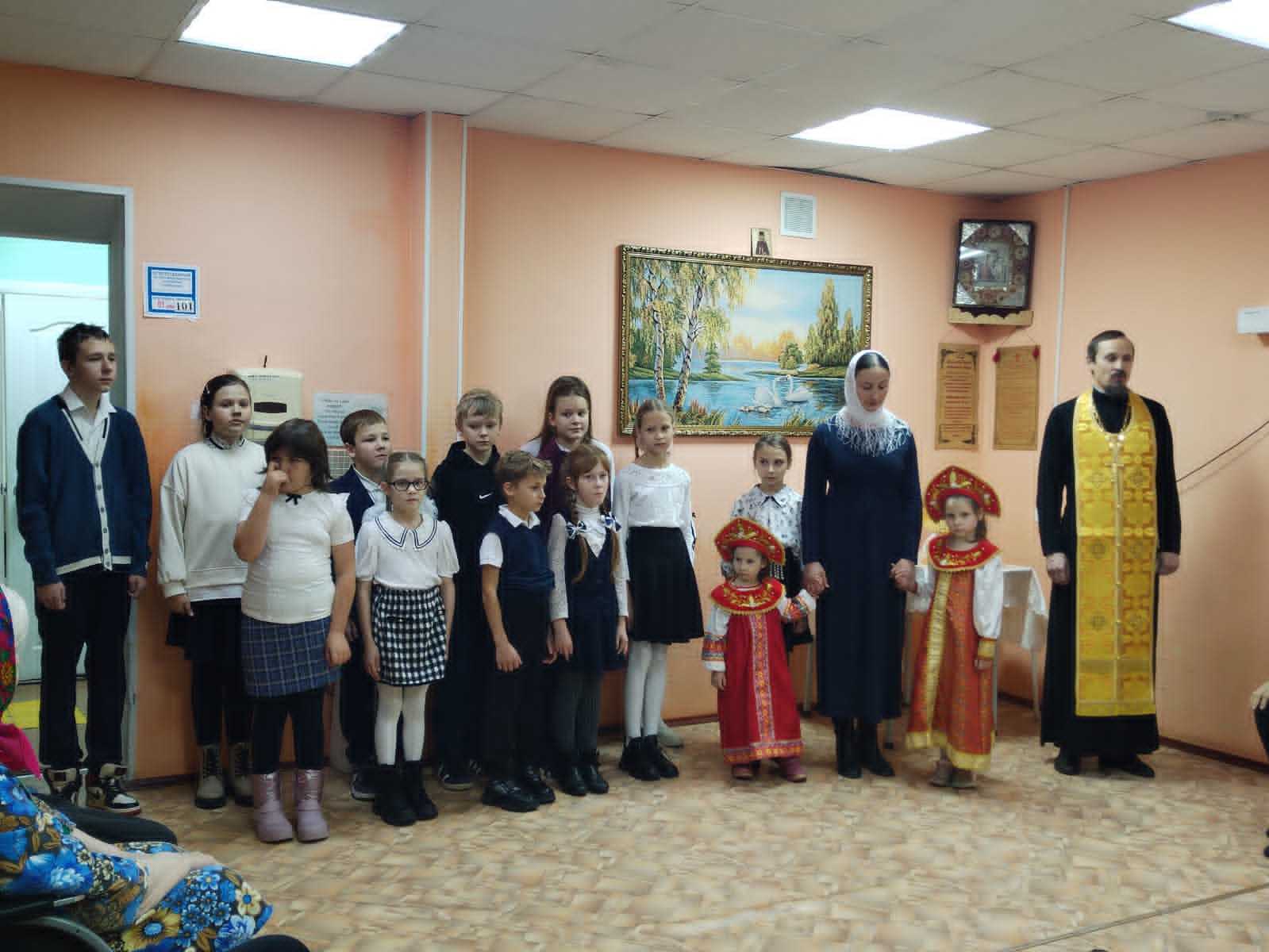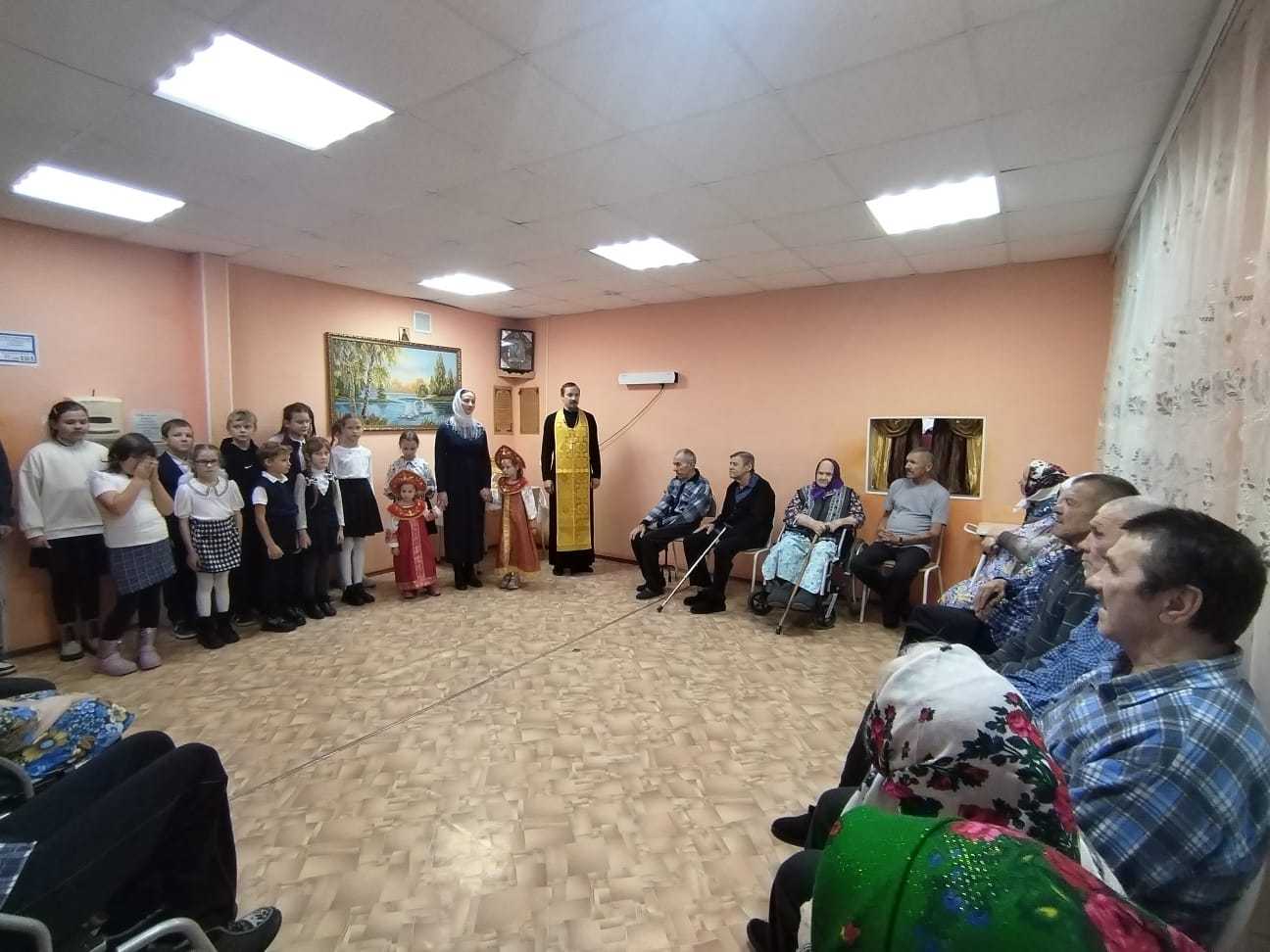 17 октября, в рамках месячника пожилого человека, в доме-интернате состоялось замечательное событие — визит юных артистов хора «Зернышки» из Воскресной школы храма Пресвятой Живоначальной Троицы поселка Шаранга.