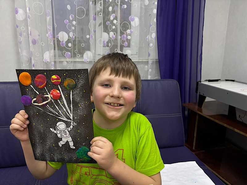 В преддверии Дня космонавтики воспитанники Центра подготовили творческие работы на космическую тематику. Воспитатели Федорова Л.В. и Борисова В.В. организовали выставку этих работ под названием «Бескрайний космос».