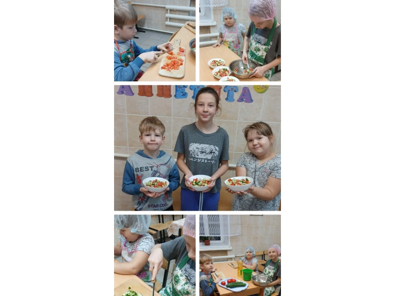В кружке "Вкусные истории" ребятам понравилось готовить салат из огурцов и помидоров. Салат получился вкусным и аппетитным! Конечно, ведь сделали его сами дети!
