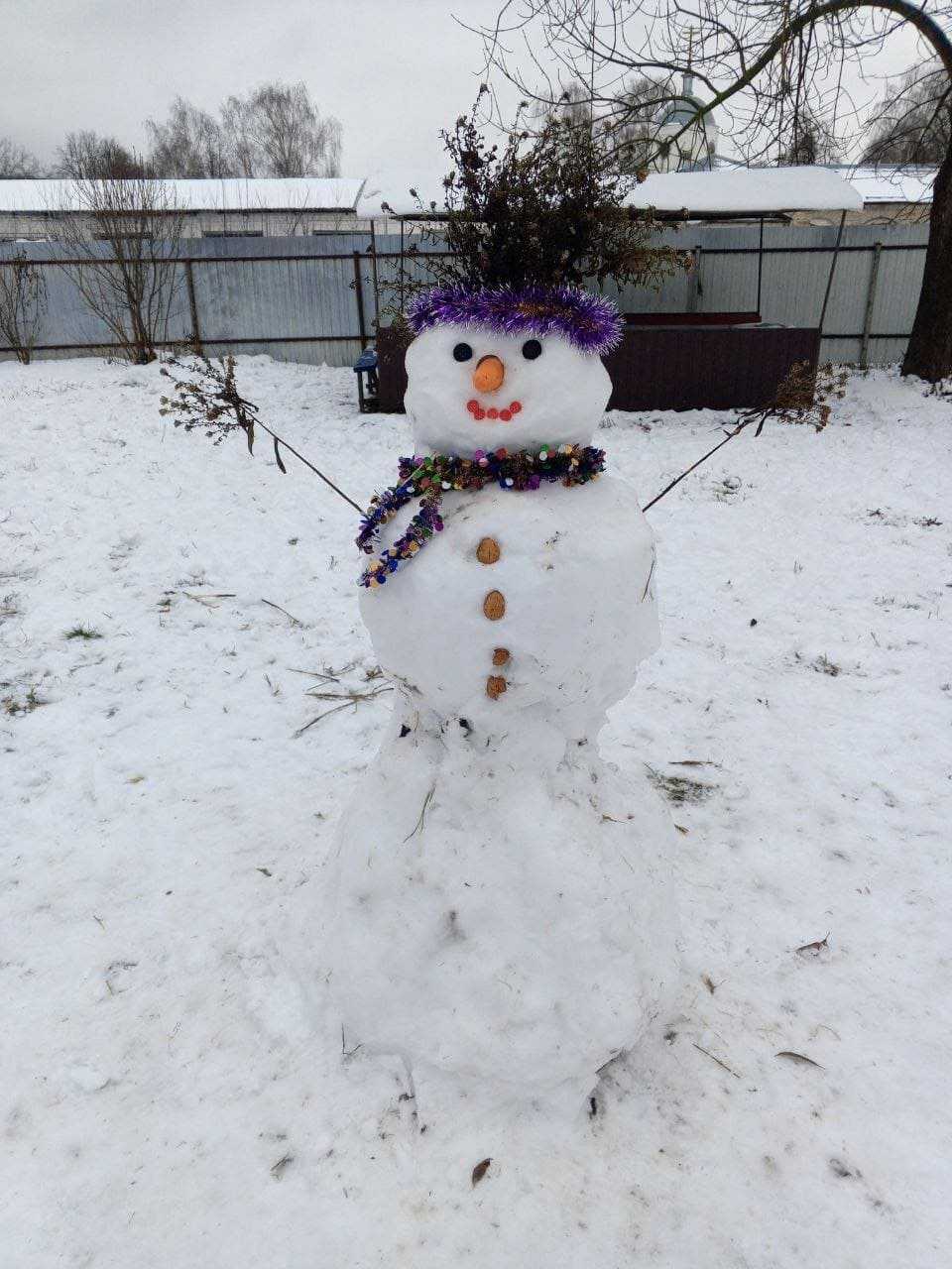 Лепим мы снеговика, Крутим гладкие бока! Эй! Ребята! С ним дружите, Нос - морковку подарите! Если прочь отступит стужа, Он растает – будет лужа... Но пока стоит на месте И доволен, что мы вместе! Наконец-то выпал снег и можно слепить снеговика.