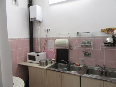 Оборудован электроплитой, холодильниками, кухонной мебелью, оборудованием и инвентарем в достаточном количестве, имеется три электрические мясорубки, электрокипятильник, картофелечистка, блинница.