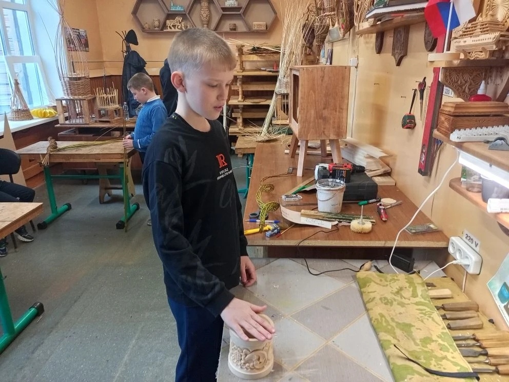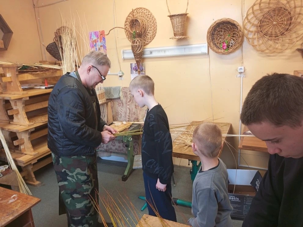 Еще одна добрая встреча ждала ребят в "Центре развития детского творчества". Мастер класс по плетению из лозы провел Старшинов С. Н. , каждый попробовал себя в этом не простом, но интересном искусстве и смог на память забрать сплетенное изделие.