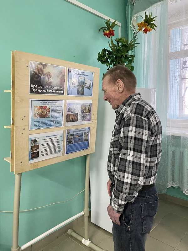 Для проживающих дома-интерната оформлен информационный стенд «Крещение Господне. Праздник Богоявления».
