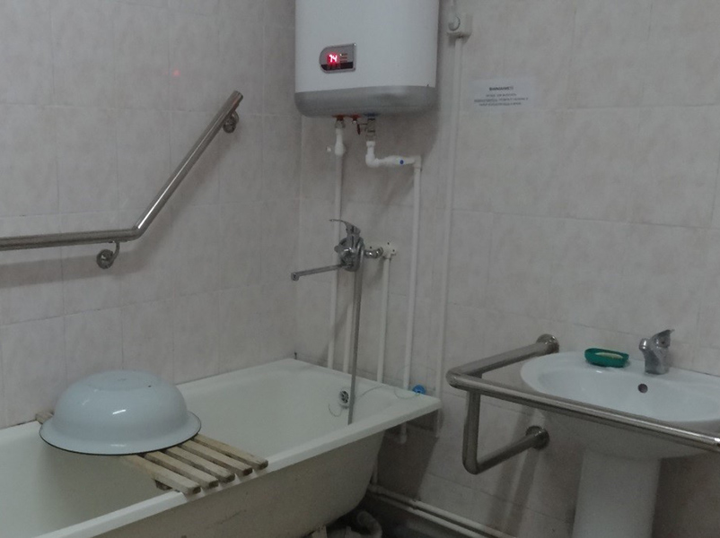 В корпусе оборудованы санитарно-гигиенические помещения оснащенные необходимым, удобным, современным оборудованием и элементами доступной среды: ванная, душевая кабина, электрический водонагреватель, кушетка, раковины для мытья рук и унитазы.