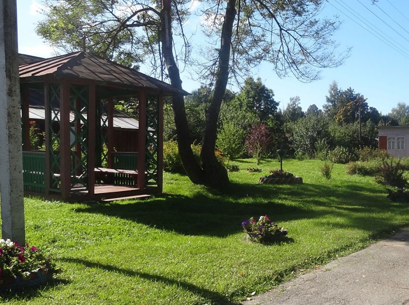 Территория учреждения составляет 8205,00 м2, которая огорожена капитальным ограждением и благоустроена. Для сбора мусора и отходов построена закрытая контейнерная площадка. На части территории силами сотрудников посажены плодовые деревья и кустарники. Также на территории установлены 2 беседки для отдыха проживающих в летнее время. По мере необходимости вся территория выкашивается. Зимние дорожки чистятся снегоуборочной машиной. Весной силами сотрудников с привлечением трудоспособных проживающих разбиваются клумбы и высаживаются цветы. Кроме беседок на территории установлены скамейки на которых могут отдохнуть проживающие во время прогулок.